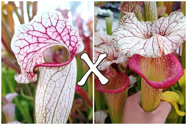I semi derivano dall’ibridazione tra Sarracenia x “EG Sesshomaru”, senza dubbio la selezione targata Esotik Garden più bella di tutte, e a nostro modesto parere una delle sarracenie più belle esistenti al mondo, e Sarracenia x moorei ‘Adrian Slack’, probabilmente la cultivar più famosa ed una delle sarracenie più belle e variopinte che ci siano.