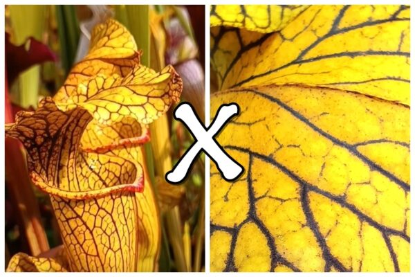 I semi derivano da autoimpollinazione di Sarracenia x “EG yellow jacket”, una delle selezioni originali di Esotik Garden più acclamate dagli appassionati, caratterizzata da una colorazione che ricorda quella del calabrone, da cui prende nome: giallo vibrante, con qualche sfumatura arancione, e venature scure come inchiostro.