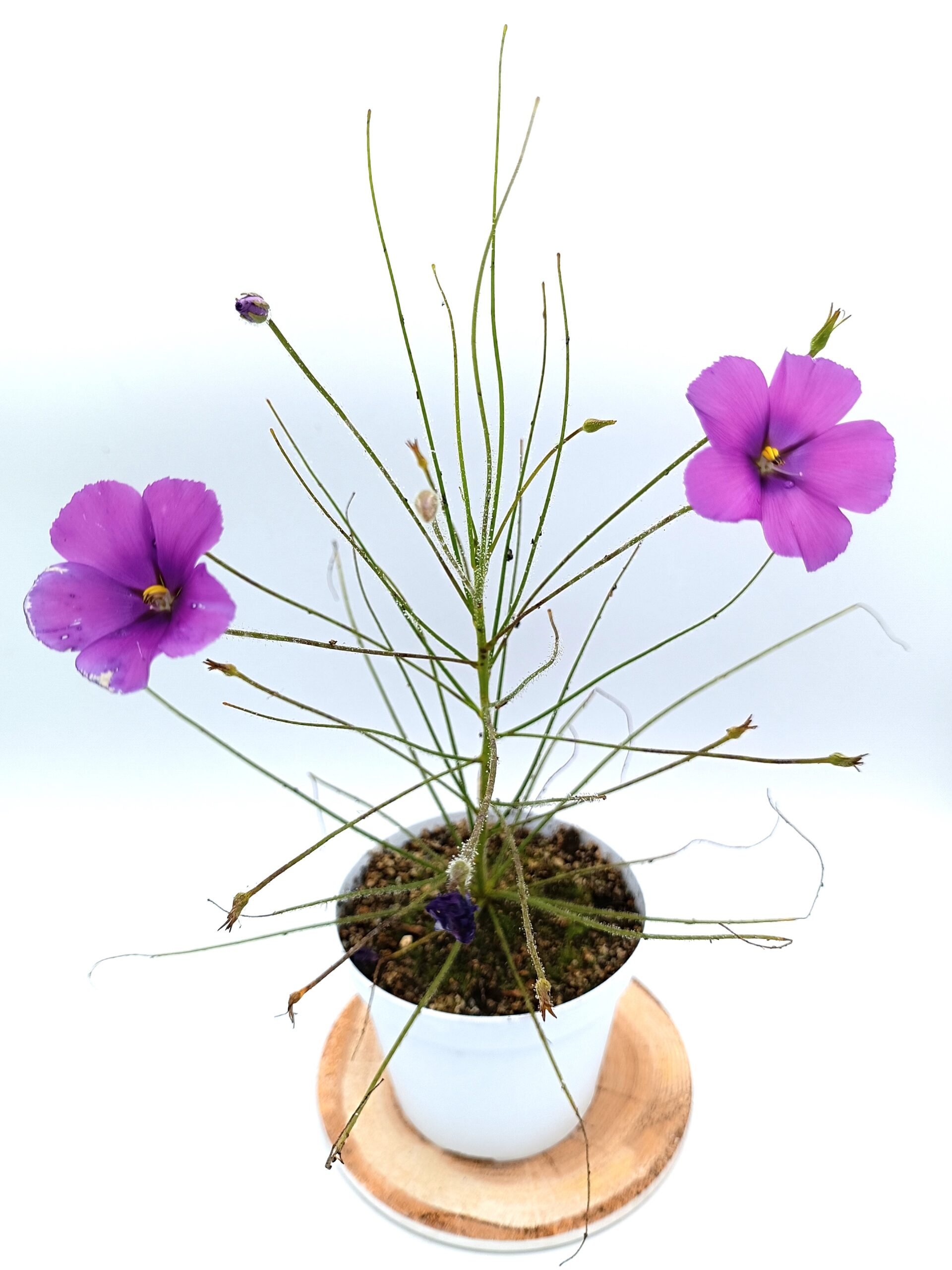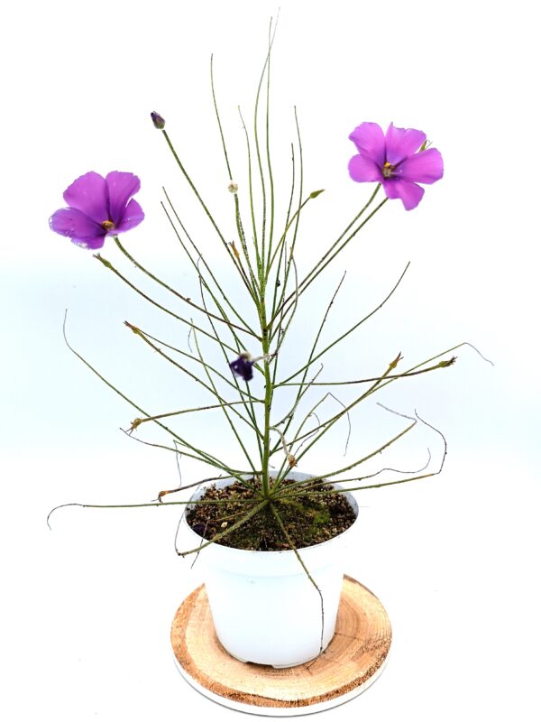 Byblis gigantea è, come suggerisce il nome, la specie più grande di questo genere, e raggiunge il mezzo metro d’altezza. Per tutta la primavera e parte dell’estate la pianta regala una copiosa fioritura. I fiori sono viola o rosa, larghi 4 cm.