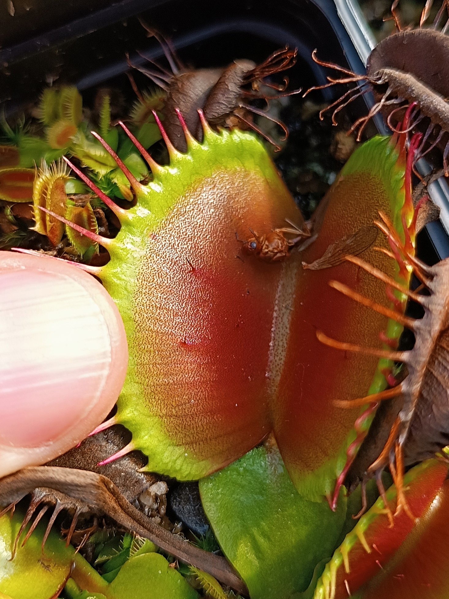ALIMENTAZIONE E CONCIMAZIONE: Quando viene coltivata all’aperto, Dionaea muscipula cattura prede in abbondanza e non necessita di alcun aiuto. È comunque possibile integrare la sua dieta con un fertilizzante fogliare da applicare una volta al mese. Generalmente va bene usare 1/10 del dosaggio raccomandato in etichetta di un qualsiasi concime universale con microelementi. Se desideri nutrire le trappole della tua acchiappamosche, ti consigliamo di utilizzare prede vive, poiché le trappole, una volta scattate, hanno bisogno di sentire ulteriore movimento al loro interno per sigillarsi ed iniziare il processo di digestione. Ogni scatto a vuoto (o per cibo inerte) significa una grande quantità di energia sprecata per la pianta.