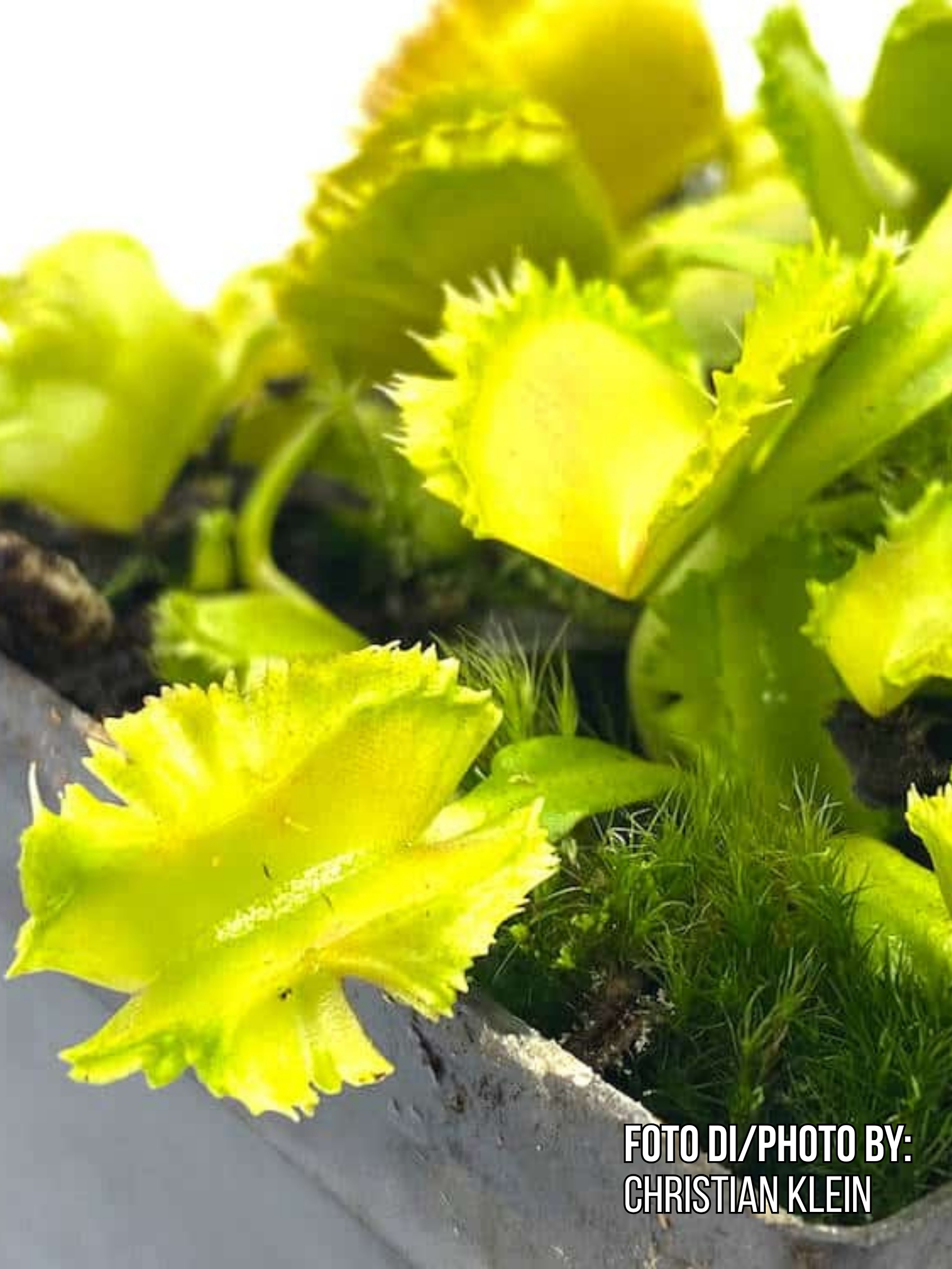 Dionaea muscipula “CK biohazard 2” è una selezione di Christian Klein dotata di trappole con margini frastagliati con una doppia dentatura disordinata. Un clone mutante che sembra essere uscito da un incidente con materiale radioattivo. Davvero insolito.