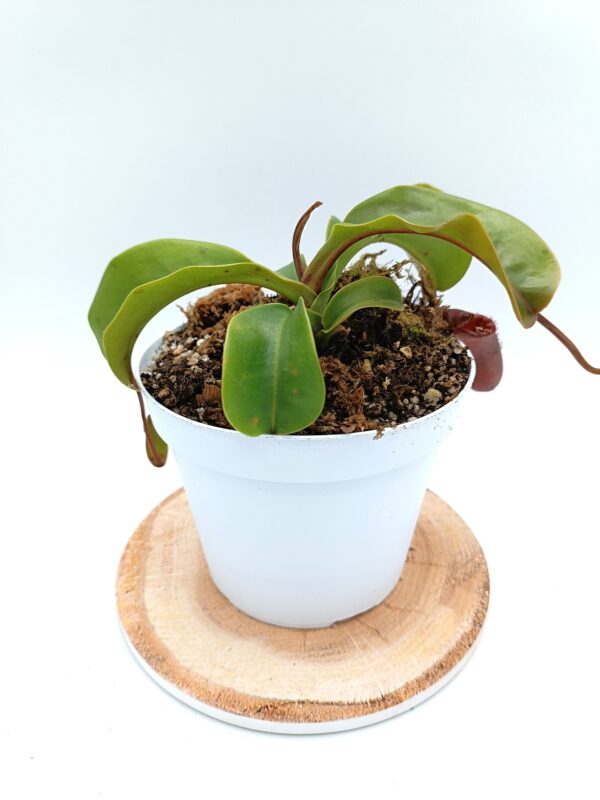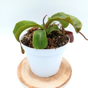 ACQUA E UMIDITÀ: a differenza di molte altre specie di piante carnivore, che amano essere mantenute bagnate fradice durante la loro stagione di crescita, le Nepenthes preferiscono essere mantenute sempre solo umide. L’ideale sarebbe annaffiarle dall’alto, ma è possibile anche porle su di un sottovaso con 1cm d’acqua ed aspettare che sia evaporata completamente prima di rabboccarla. La qualità dell’acqua è un altro fattore in cui le nepenti differiscono dalle altre carnivore, infatti sono abbastanza indulgenti. È buona prassi usare sempre solo acqua demineralizzata, da osmosi inversa o piovana, ma altri tipi di acqua sono tollerati anche per lunghi periodi.