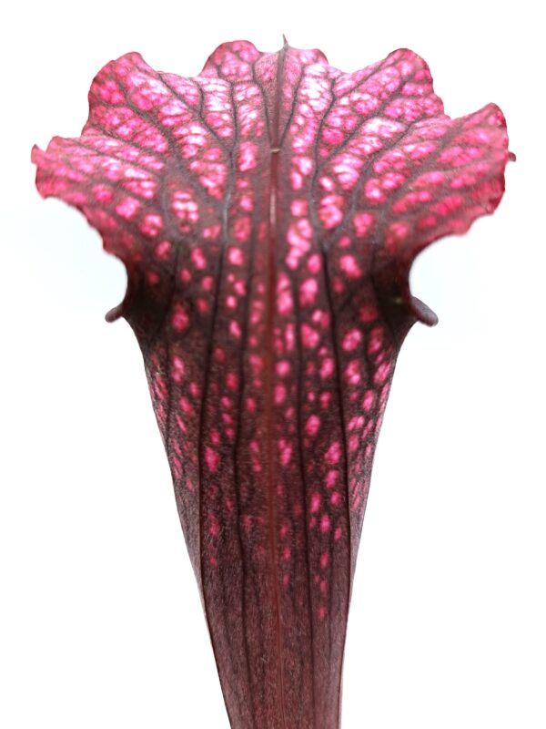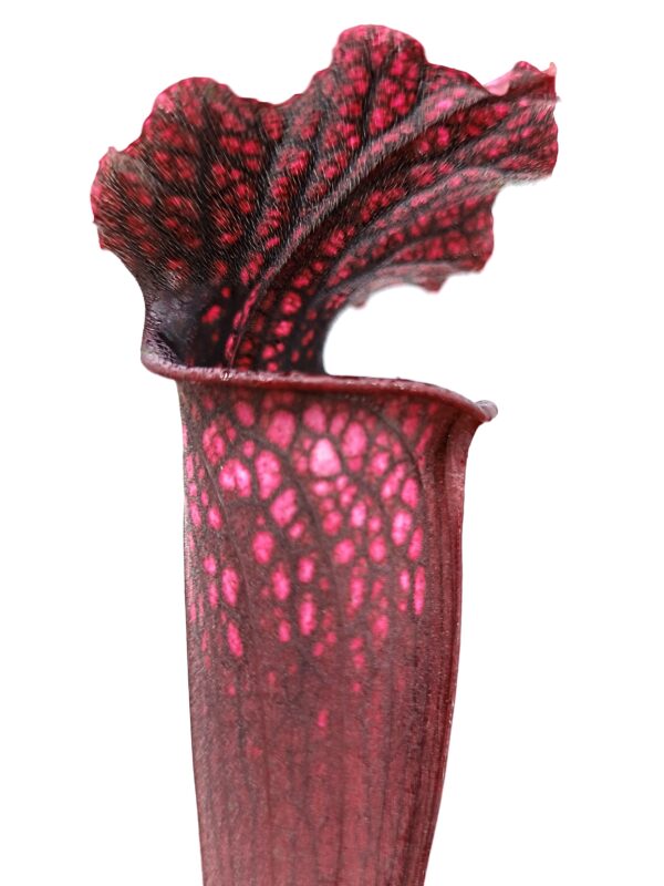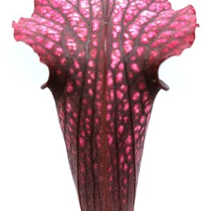 Questa Sarracenia x areolata “purple” è un ibrido tra S. leucophylla “hot pink selections 1” (L48a MK) e S. alata var. rubrioperculata (A59 MK), due cloni magnifici e vivacemente colorati.