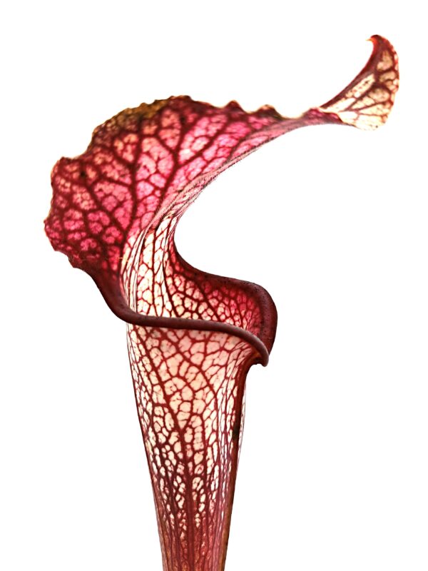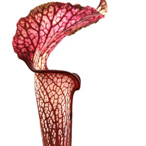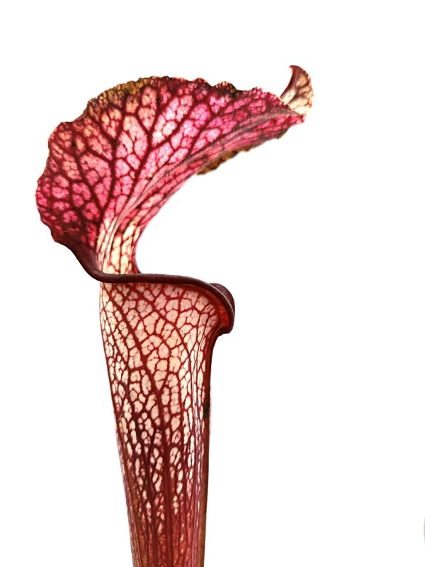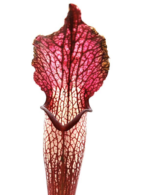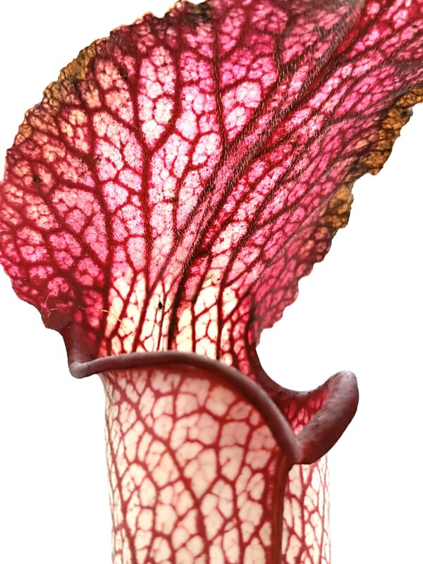 Sarracenia (x “camisole”) x (x areolata, SH07 RVL), clone D è un ibrido complesso tra 2 altri ibridi con S. leucophylla.